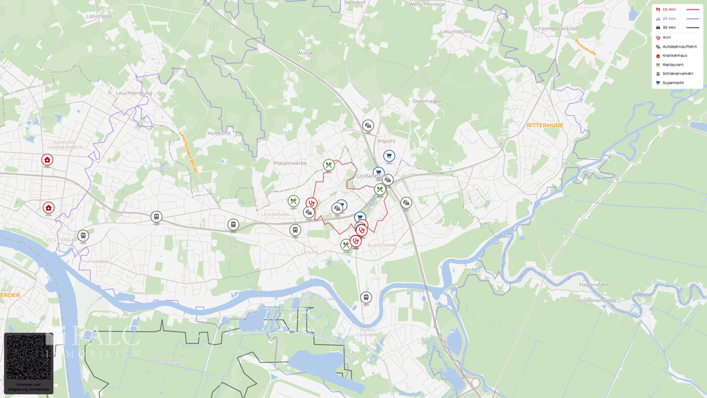 Lesum überzeugt durch seine naturnahe Lage entlang der Lesum sowie zahlreiche Naherholungsmöglichkeiten, die den Standort besonders lebenswert machen. Gleichzeitig ist eine sehr gute Anbindung an die Bremer Innenstadt gegeben - sowohl mit dem Auto als auch durch den öffentlichen Nahverkehr.