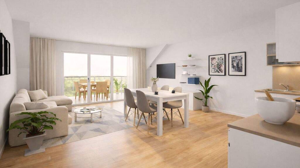 Die 2- und 3-Zimmer-Wohnungen sind auf zwei kleine Baukörper verteilt und werden nach dem aktuellen Stand der Technik, energieeffizient in klimafreundlicher Bauweise erstellt. Die Beheizung erfolgt durch eine Luft/Wasser-Wärmepumpe, während eine kontrollierte Be- und Entlüftung für ein angenehmes Raumklima sorgt. Zusätzlich wird die Nachhaltigkeit durch eine Photovoltaikanlage auf dem Dach unterstützt.