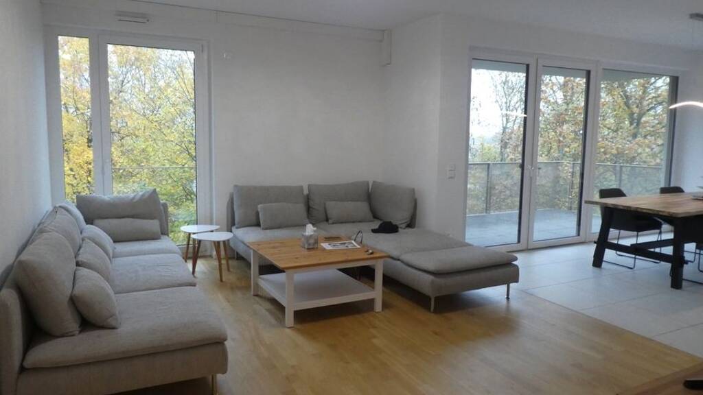 Diese traumhafte 4-Zimmerwohnung mit einer Wohnfläche von ca. 118 m² überzeugt durch ihre ruhige Lage direkt am Bach und den angrenzenden Feldern. Hier genießen Sie naturnahes Wohnen in Kombination mit einer modernen Ausstattung, die keine Wünsche offenlässt. Das Herzstück der Wohnung bildet die großzügige Wohnküche mit hochwertiger Einbauküche und Kochinsel - ideal für gemeinsames Kochen und gemütliche Stunden. Von hier aus gelangen Sie direkt auf den Balkon, der zum Entspannen mit Blick ins Grüne einlädt. Die Wohnung verfügt über drei Schlafzimmer, die jeweils mit einer Klimaanlage ausgestattet sind und so höchsten Wohnkomfort bieten. Zwei stilvolle Badezimmer sorgen für zusätzlichen Komfort: Das Hauptschlafzimmer verfügt über ein eigenes Bad mit Dusche und Badewanne, während das zweite Badezimmer mit einer Dusche ausgestattet ist. Ein praktischer Abstellraum innerhalb der Wohnung sowie ein Kellerraum bieten zusätzlichen Stauraum. Abgerundet wird das Angebot durch eine Fußbodenheizung und zwei Tiefgaragenstellplätze für zuzüglich je € 15.000,-. Diese Wohnung ist die ideale Wahl für alle, die modernes Wohnen in idyllischer Umgebung schätzen.