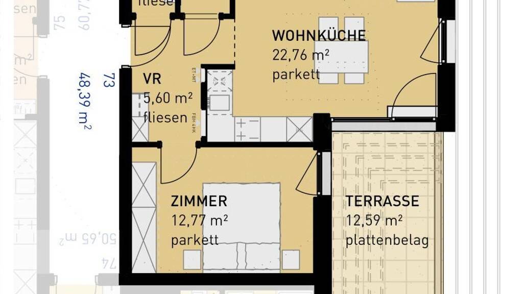 Sollten Sie mehr Platz benötigen, planen wir auch gerne eine größere Wohnung (zB eine 4-Zimmer-Wohnung anstelle von zwei nebeneinander liegenden 2-Zimmer-Wohnungen) für Sie. Fragen Sie einfach bei unserem Vertrieb nach!