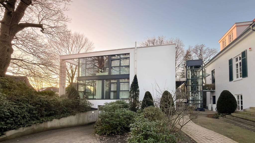 Das Objekt liegt in einer gepflegten Parkanlage mit altem Baumbestand. Die angrenzende Villa Holdheim verleiht der Umgebung ein besonderes Ambiente.