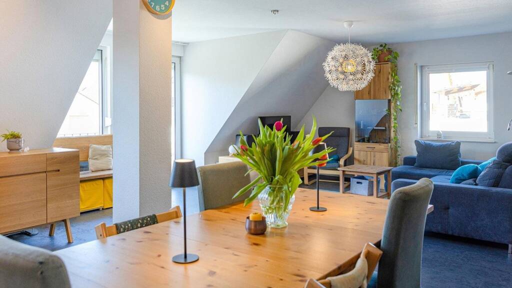 - Großzügige 111 m² Wohnfläche auf zwei Ebenen - Lichtdurchfluteter Wohn- und Essbereich mit offenem Küchenkonzept - Südwest-Balkon mit Blick ins Grüne und zu den Weinbergen - Flexibles Zimmer für Kinder, Gäste oder Home Office - Private Rückzugsebene mit Schlafzimmer und neuem Duschbad - Tageslichtbad mit Badewanne und Platz für Waschmaschine und Trockner - Praktischer Abstellraum - Eigener Kellerraum - Gemeinschaftsgarten - Zwei Außenstellplätze - Niedriges Hausgeld (ca. 260 € inkl. Heizung & Rücklagen)