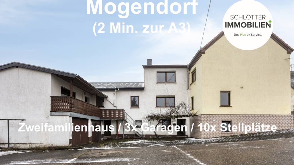 Käuferprovisionsfreies, gut gelegenes Zweifamilienhaus mit 3x Garagen und 10x Stellplätzen in Mogendorf nur 2 Min. von der A3 entfernt.