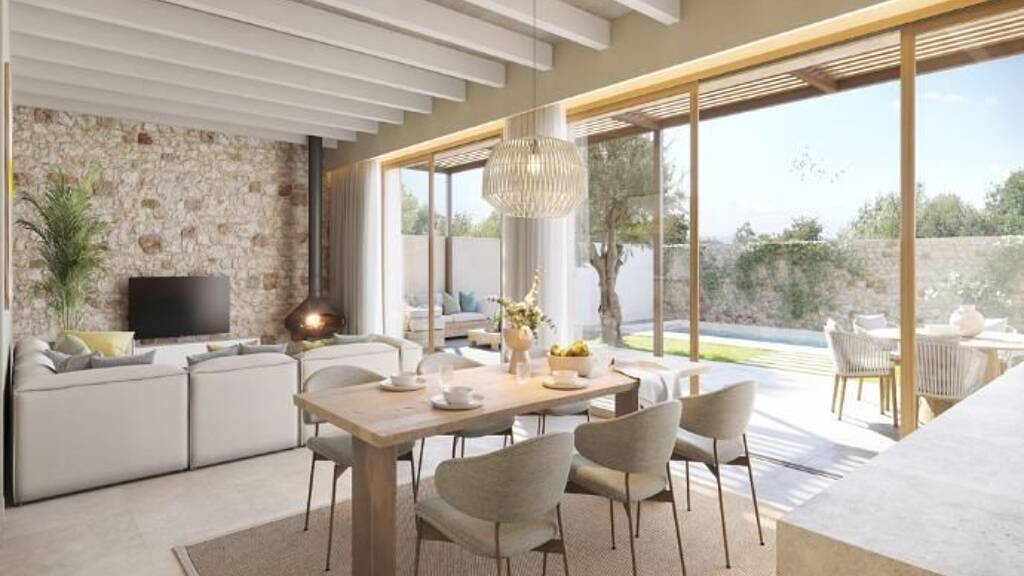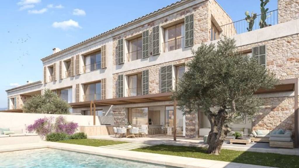 Drei wunderschöne und energieeffiziente Stadthäuser entstehten in einer ruhigen Seitenstraße auf 303 m² Grundstück in Südausrichtung am Stadtrand von Santanyi. Die Bauweise entspricht höchstem, aktuellen Standard. Atmungsaktives und trotzdem sinnvoll gedämmtes Mauerwerk, schallisolierte und energieeffiziente Fenster, Salzwasser Pool mit Gegenstromanlage, Steuerung der Heizung und Klimaanlagen über Touch Panel in den Räumen, Alarmanlage, Aufzug, SPA-Bereich. Für die Innenausstattung werden nur auserlesene natürliche Materialien verwendet wodurch eine komfortable und angenehme Atmosphäre geschaffen wird. Im Erdgeschoß finden Sie einen lichtduchtfluteten Wohn- Essbereich mit offener Küche, Schlafzimmer mit Bad En Suite, Speisekammer, Weinkeller, Gäste-WC und Garage. Der Außenbereich mit überdachter Terrasse, Sonnenterrasse, beheiztem Schwimmbad und Außenküche lädt zum Entspannen mit Freunden und Familie ein. Im 1. OG sind vier Schlafzimmer mit jeweils Bad En Suite untergebracht. Das 2. OG ist dem SPA-Bereich vorbehalten. Hier finden Sie neben Gym, Sauna, Jacuzzi und Badezimmer noch eine schöne Sonnenterrasse. Auf der Dachterrasse mit 360 °Rundumblick lässt es sich herrlich Sonnenbaden. Dieses exclusive Stadthaus ist unterkellert. Im Keller sind die Haustechnik, Hauswirtschaftsraum und ein großer Abstellraum untergebracht. Alle Ebenen sind bequem mit dem Aufzug zu erreichen. Insgesamt bietet dieses Haus eine bebaute Fläche von 556 m². Fertigstellung Olivo I Herbst 2025