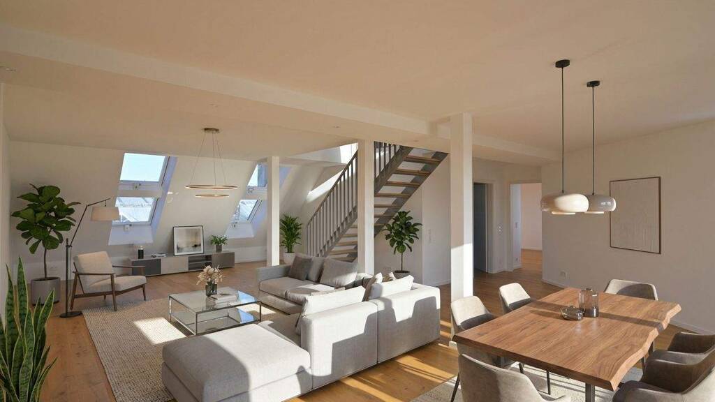 Diese großzügige Maisonette-Wohnung befindet sich im 5. Stock eines denkmalgeschützten Gebäudes in der Rumfordstraße, München. Mit einer Wohnfläche von ca. 207 qm bietet die Wohnung insgesamt 6 Zimmer, darunter 2 Schlafzimmer, 2 Badezimmer, und 1 Gäste-WC die ideal für Familien oder Paare sind. Der offene Grundriss sorgt für eine lichtdurchflutete Atmosphäre.