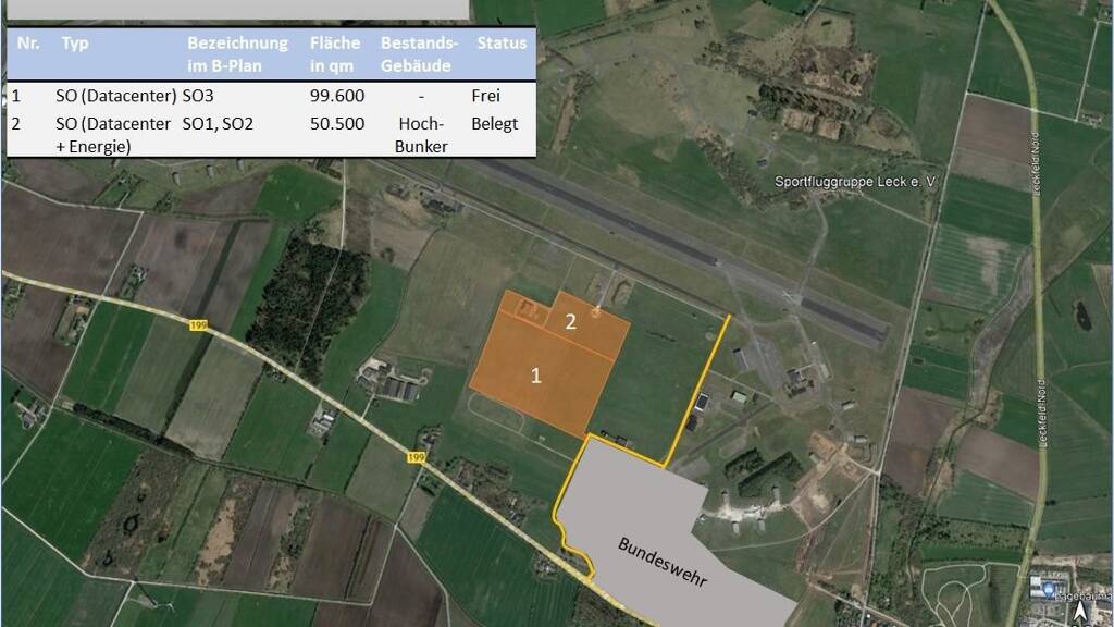 Die Gemeinde Leck hat auf dem ehemaligen NATO-Flugplatz Leck den „Green Datacenter Park“ und den „Green Business Park“ entwickelt. Dieses Exposé adressiert den Green Datacenter Park. Zum Green Business Park geht es hier.