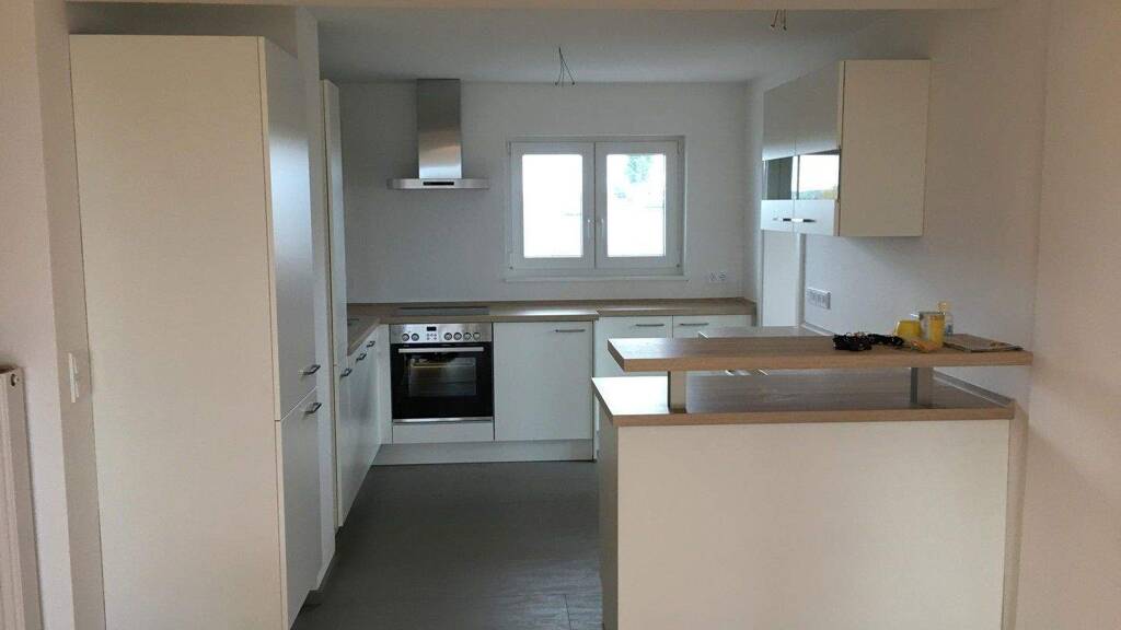 Die Ausstattung zeichnet sich u.a. durch hochwertiges Eichen-Laminat in allen Zimmern aus. Die Türen sind weiß oder aus Glas. Zur vorhandenen Einbauküche gehören: ein Backofen, ein Ceran-Kochfeld, eine Spülmaschine, ein Kühlschrank, ein Gefrierfach, eine Dunstabzugshaube mit externer Entlüftung sowie eine Waschmaschine. Neben der Küche befindet sich ein geräumiger Abstellraum.