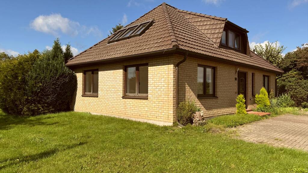 Solide und massiv gebautes Einfamilienhaus mit schönem Ausblick in ruhiger Lage. Im Erdgeschoss befinden sich ein Vollbad, eine Einbauküche, das Wohnzimmer und das zentrale Esszimmer. Hier angrenzend liegt ein separater Bürotrakt mit zwei Räumen (40m²) und einem Gäste-WC. Im Obergeschoß sind 3 Schlafräume und ein ein Duschbad belegen.