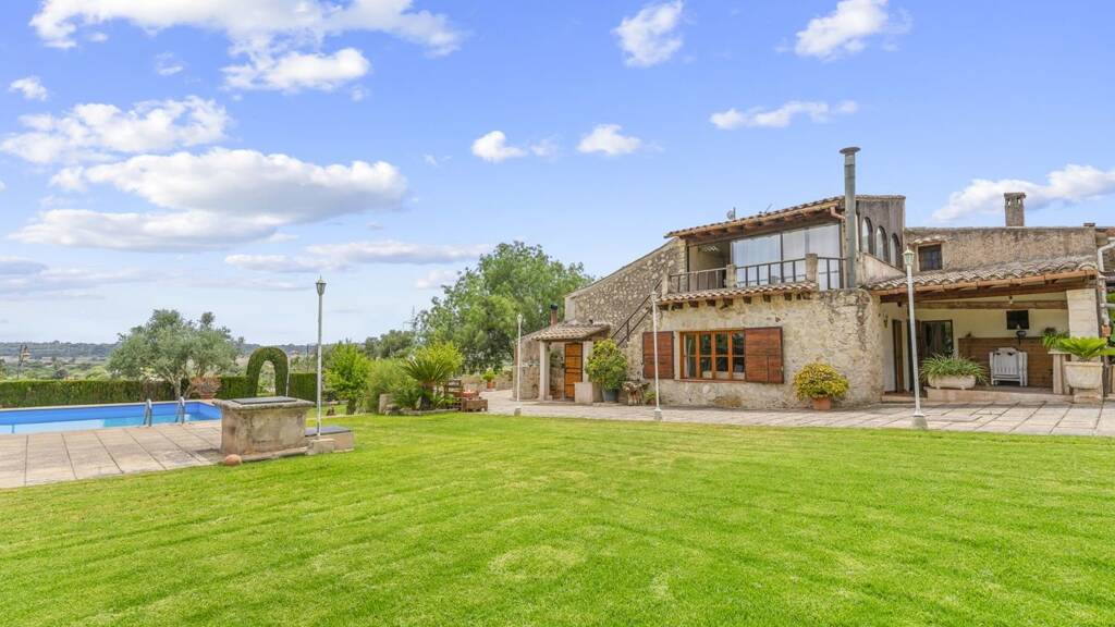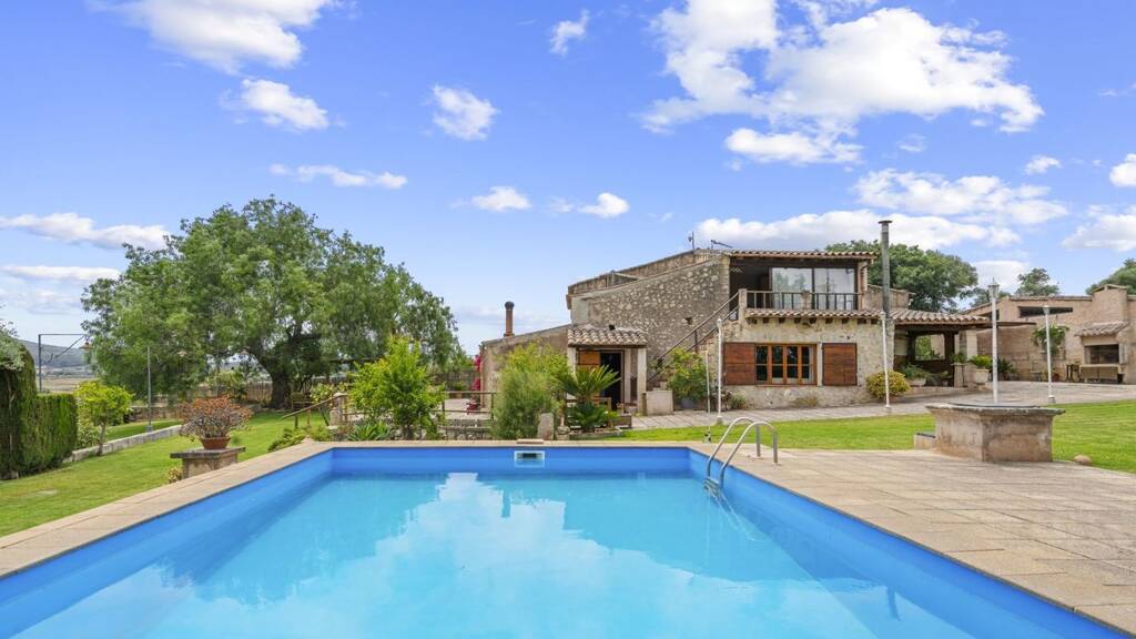 Die Finca besticht durch ihre großzügige Wohnfläche von ca. 270 m², verteilt auf zwei Etagen, die insgesamt sechs Zimmer, darunter vier Schlafzimmer und vier Badezimmer, beherbergen. Die Ausstattung umfasst eine Klimaanlage, eine großzügige offene Einbauküche sowie mehrere Kamine, die für eine angenehme Atmosphäre sorgen. Der Wohnbereich mit seinen sichtbaren Holzbalken und der traditionellen Dekoration lädt zum Verweilen ein. Die Fliesenböden in der gesamten Finca unterstreichen das stilvolle Ambiente des Hauses.