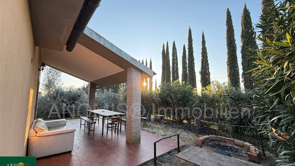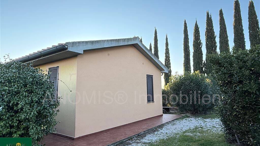 Das 50 m² große Häuschen umfasst zwei gemütliche Zimmer, ein Badezimmer und eine Terrasse, von der aus Sie einen atemberaubenden Weitblick auf die umliegende Natur genießen können. Der Garten ist von einem malerischen Olivenhain geprägt, der Ihnen nicht nur eine herrliche Aussicht, sondern auch Ruhe und Erholung inmitten des typisch toskanischen Landlebens bietet. Der gesamte Bereich ist vollständig eingezäunt, was für zusätzliche Sicherheit und Privatsphäre sorgt.
