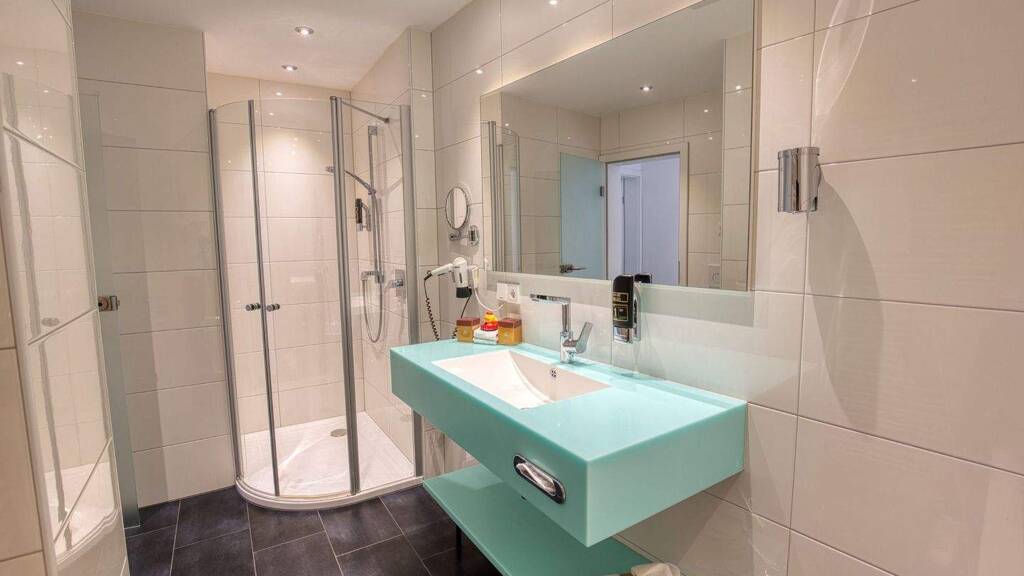 - Hochwertige Fliesen und moderne Armaturen