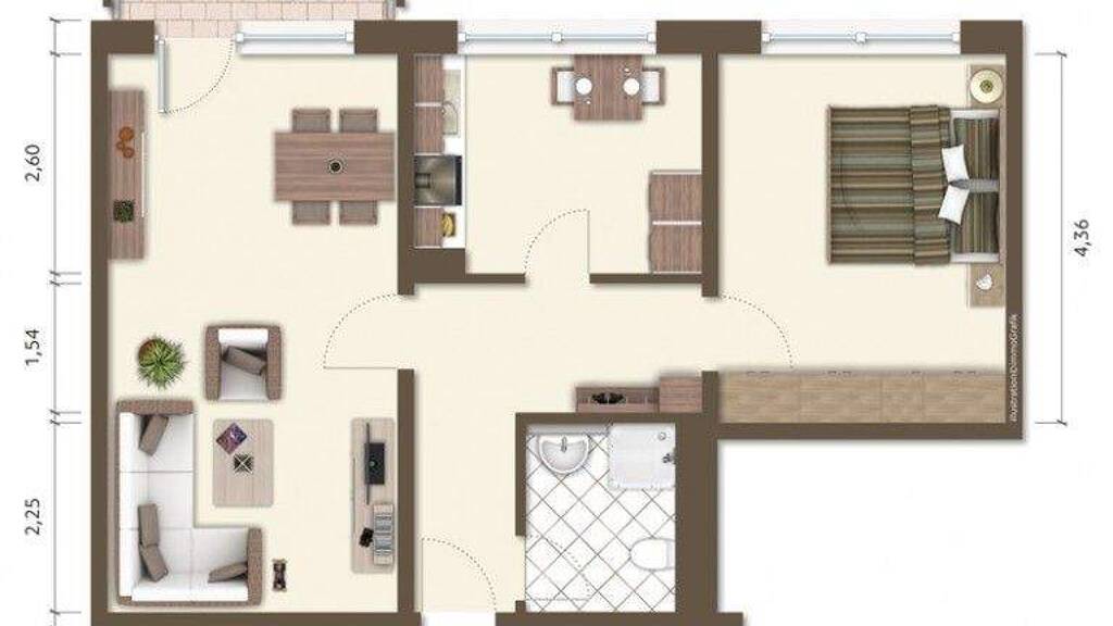 2 Zimmer  •  60 m²  •  1. Geschoss  •  frei ab sofort