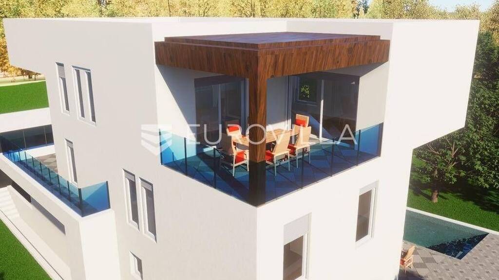 Vodice, NOVOGRADNJA, projekt stambene zgrade koja ce biti gradena prema najvisim standardima na tri etaze s ukupno 4 stambene jedinice. Useljenje travanj 2026. godine.STAN S4 - dvosoban stan na drugom katu zatvorene povrsine 96,78 m2, natkrivena terasa 18,65 m2. Pripadaju mu dva vanjska parkirna mjesta velicine 12,50 m2. Ukupno obracunski neto korisna povrsina iznosi 115,77 m2.Sastoji se od ulaznog prostora, dnevnog boravka s blagovaonicom i kuhinjom otvorenog tlocrta s izlazom na terasu, dvije spavace sobe, dvije kupaonice i veseraja.Vrhunska oprema: dizalica topline, klimatizirano, PVC stolarija, protuprovalna ulazna vrata, parket I klase, vrhunska keramika i sanitarna oprema...Nalazi se na atraktivnoj mikrolokaciji 400 metara od centra Vodica, plaze, te svih potrebnih sadrzaja. Prodavatelj je tvrtka, te kupac na placa porez na kupnju nekretnina.Za sve ostale informacije stojimo na raspolaganju.... Vise na eurovilla.hr, ID: 122105