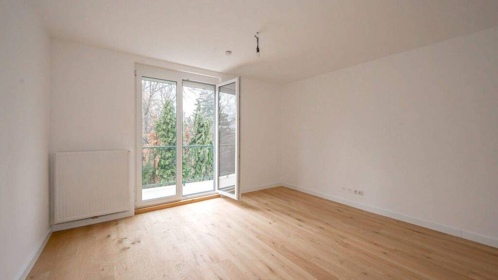 Die Wohnung befindet sich in der Bujattigasse, 1140 Wien, und bietet eine idyllische, ruhige Umgebung, einschließlich eines kleinen Baches und viel Grün direkt vor der Haustür.