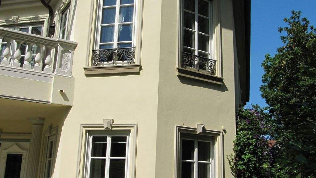 Diese luxuriöse Villa liegt eingerahmt vom fürstlichen Schlosspark in einem sehr gepflegten, ruhigen Wohngebiet, 1 a Lage. Die Bauweise ist inspiriert vom Deutsch-Barock mit jungem Baujahr und Technik aus 1994. Hochwertige Materialien, handwerkliche Details und eine repräsentative und stilvolle Atmosphäre prägen das Erscheinungsbild. Offene Lebensräume mit Halle, Freitreppe, Galerien und Illusionsmalereien entführen in andere Welten. Alle Wohnbereiche sind lichtdurchflutet und offen gestaltet. Für Wellness und Erholung schließt sich ein Gartenpavillon mit Sauna und Wellnessbereich an. Der parkähnliche Garten ist eingefriedet und traumhaft angelegt und bietet Privatsphäre mit farbenfrohen Beeten, mit Rosen und alten Baumbestand. Das Garagengebäude für 3 PKW ist dem Haus im Baustil und Ausstattung angepasst, mit vertikalen Toren und einem ferngesteuerten Tor zur Zufahrt.