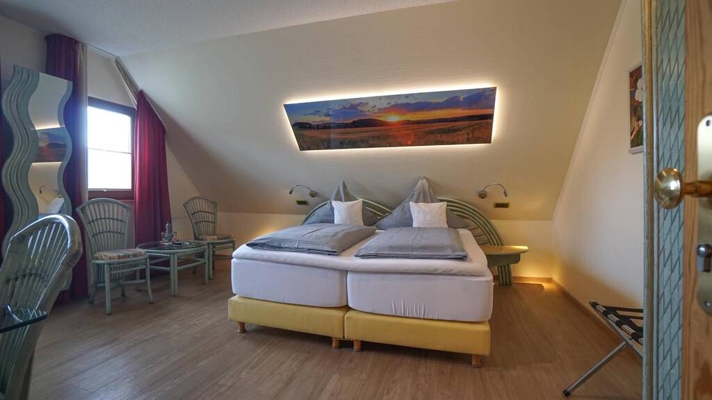 Der seit mehreren Generationen familiengeführte Betrieb steht aus Altersgründen zum Verkauf und verfügt über insgesamt 8 Gästezimmer, ein Restaurant mit bis zu 50 Sitzplätzen, einen Schank-/Frühstücksraum mit neu gestalteter Theke und einen großen, idyllisch an einem Teich gelegenen Biergarten mit kleinem Kinderspielplatz für bis zu rd. 200 Personen.