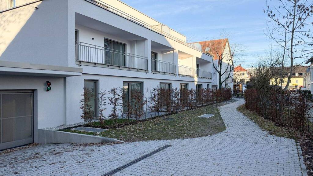 Angeboten wird eine neuwertige 2-Zimmer-Wohnung in herrlich idyllischer Lage. Eingebettet im Grünen und zurückversetzt von der Straße, hat die moderne Wohnanlage ganz besonderen Charme. Bei der Konzeption des Hauses wurde großer Wert auf Wohnkomfort, Qualität und Energieeffizienz gelegt. Das Wohnhaus verfügt über einen Aufzug und hat direkten Tiefgaragenzugang. Zu jeder Wohnung gehört ein großzügiger Tiefgarageneinzelstellplatz sowie ein Kellerraum. Darüber hinaus gibt es einen zentralen Fahrradparkplatz, direkt am Hauseingang. Moderne Haustechniken, wie eine zentrale Wasserenthärtungs- und Photovoltaik-Anlage sorgen für nachhaltige und fortschrittliche Wohnstandards. Die Warmwasserbereitung und die Fußbodenheizung werden energieeffizient über eine Luft-Wasser-Wärme-Pumpe betrieben, welche überwiegen mit der gewonnenen elektrischen Leistung aus der PV-Anlage versorgt wird. Der Grundriss ist individuell und für einen ausgezeichneten Lichteinfall optimiert. Auch auf eine gute Schalldämmung wurde geachtet. Die Wohnung verfügt über eine Fußbodenheizung, Multi-Media-Verkabelung, elektrische Rollläden und dreifach verglaste Fenstern. Das Badezimmer ist modern und zeitlos mit hochwertigen Fliesen ausgeführt und mit einem Handtuchheizkörper ausgestattet. Zur Wohnung gehört eine große West-Loggia mit einer praktischen Außen-Abstellkammer. Zusätzlichen Stauraum bietet das geräumige Kellerabteil. Zur Wohnung gehören außerdem noch ein Einzelstellplatz in der Tiefgarage.