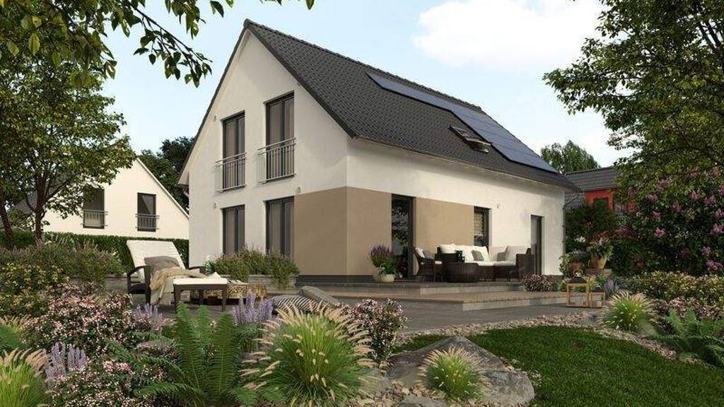 Das großzügige Haus mit dem schönen Satteldach überzeugt mit viel Platz und einem variablen Grundriss. Das Wohnzimmer schenkt genügend Raum zur Erholung, die sich anfügende Essecke wird schnell zum gemütlichen Familienmittelpunkt mit direktem Zugang zur Küche. Die hohen Fenster fangen das Tageslicht besonders gut ein. Jeder Raum im Haus wirkt offen und freundlich. Ein Arbeits- oder Kinderzimmer und das Gäste-WC runden das Erdgeschoss perfekt ab.