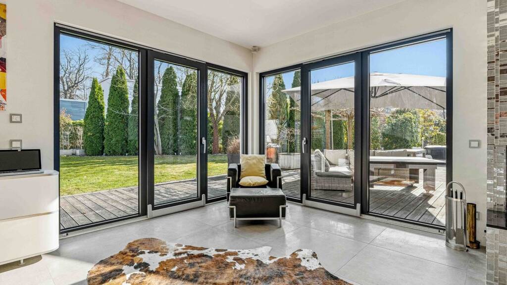 Schon beim Betreten wird deutlich, dass dieses Haus konsequent auf Licht, Weite und fließende Übergänge zwischen Innen und Außen ausgelegt ist. Große Fensterflächen, Terrassenschiebetüren und offene Sichtachsen sorgen in allen Bereichen für ein beeindruckendes Raumgefühl und lassen die umliegende Natur Teil des Wohnens werden.