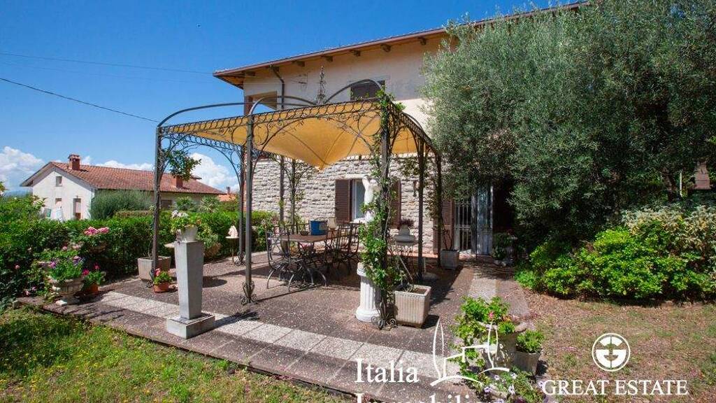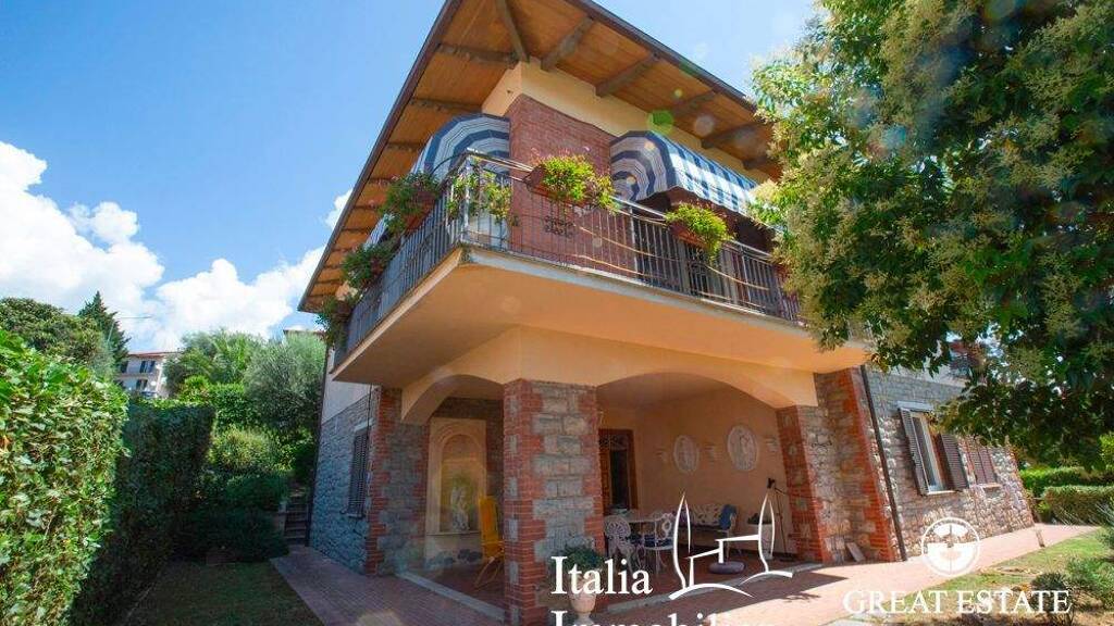 Die in den 1970er Jahren erbaute und im Jahr 2000 renovierte Villa verfügt über repräsentative traditionelle und moderne Elemente, mit Fassaden aus Stein und Terrakotta-Ziegeln, die ihr gleichzeitig ein rustikales und elegantes Aussehen verleihen. Das Anwesen erstreckt sich über insgesamt 350 Quadratmeter mit insgesamt drei Schlafzimmern, einem schönen Portikus im Erdgeschoss, einem Balkon, von dem aus man den herrlichen Blick auf den See genießen kann, einer Garage und einem privaten Garten.