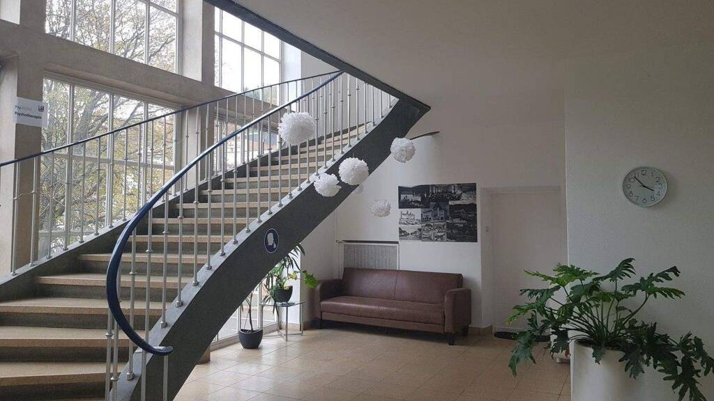 .4 großzügige, helle Räume. .Das Büro befindet sich im 2. Obergeschoss und ist über eine großzügige, repräsentative Treppe erreichbar. .Vollständig renoviert im Jahr 2024. .Die komplette Etage kann beispielsweise als separater Wartebereich genutzt werden. .Neue Küche, Dusche und WC vorhanden. .die Räume sind mit Lamellenjalousien an allen Fenstern und Beleuchtung ausgestattet. .Kabelgebundenes Internet in jedem Raum, mehrfach verfügbar. .Schnelles Glasfaserinternet. .Eigene Parkplätze direkt am Gebäude verfügbar.
