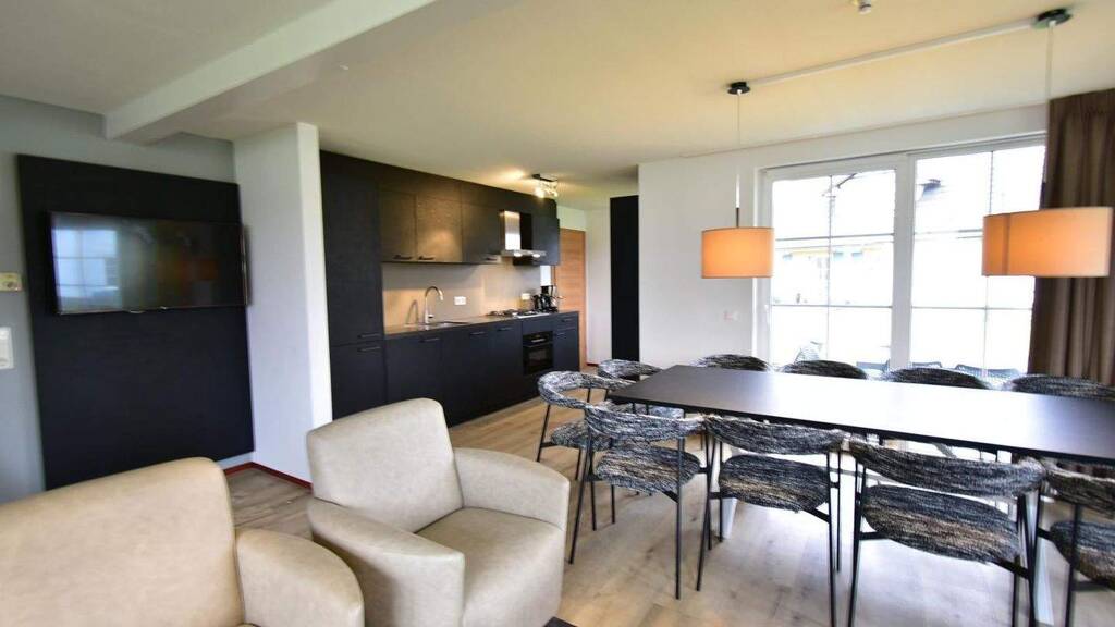In dem schönen geräumigen Wohnzimmer können Sie Ihren Urlaub mit bis zu 12 Personen verbringen, es passt einfach! Schöne große Fenster, die viel Licht hereinlassen. Der Boden ist PVC mit Fußbodenheizung für angenehme Wärme an kühlen Tagen.
