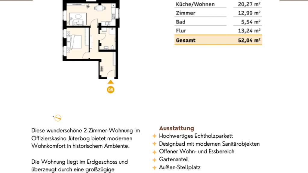 WOHN T RAUM - Exklusive 2-Zimmer-Wohnung mit Gartenanteil im Offizierskasino Jüterbog