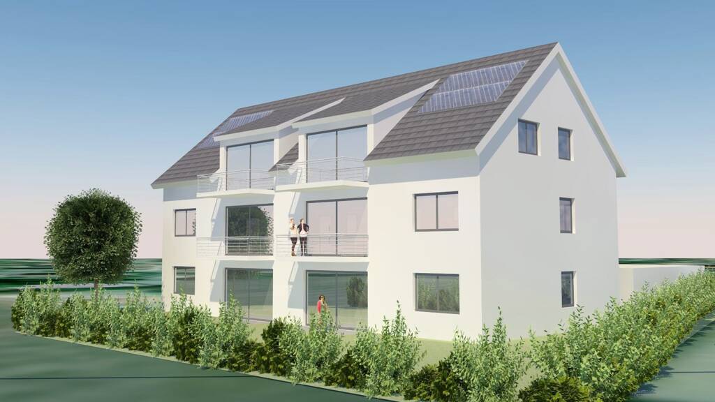 Es entsteht eine Anlage mit sechs komfortablen Dreizimmerwohnungen. Der moderne Baustil des nach Südwesten ausgerichteten Gebäudes fügt sich harmonisch in die ruhige Wohngegend ein. Bei der Planung des Hauses wurde besonderer Wert gelegt auf ökologische Baustoffe. sodass ein gesundes Wohnklima entsteht.