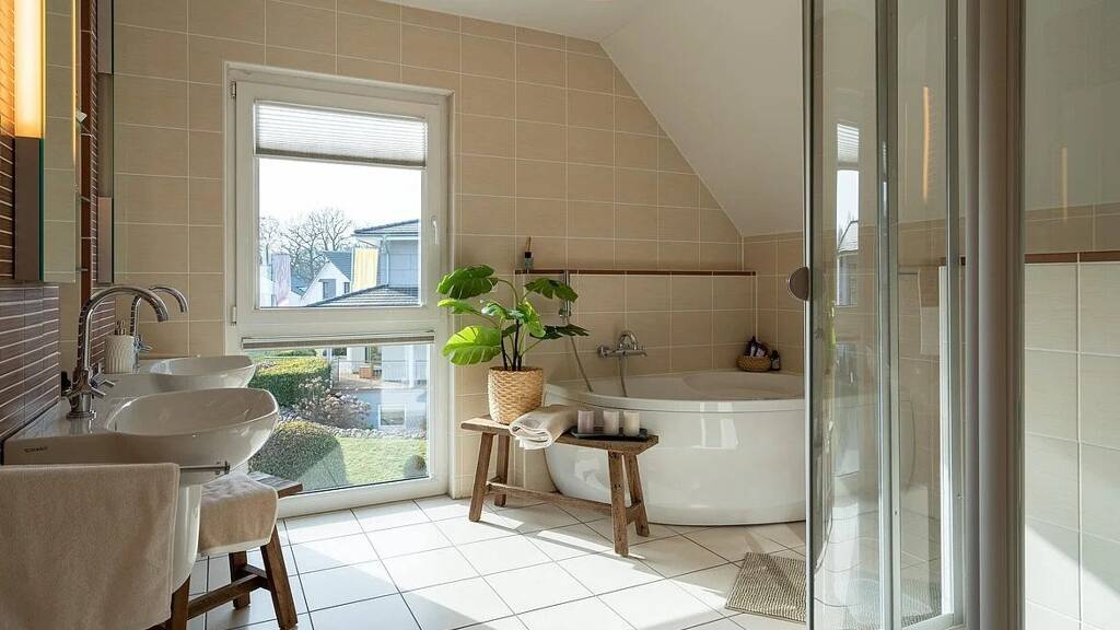 Badezimmer: Badewanne, Bad mit Dusche, Bad mit Fenster