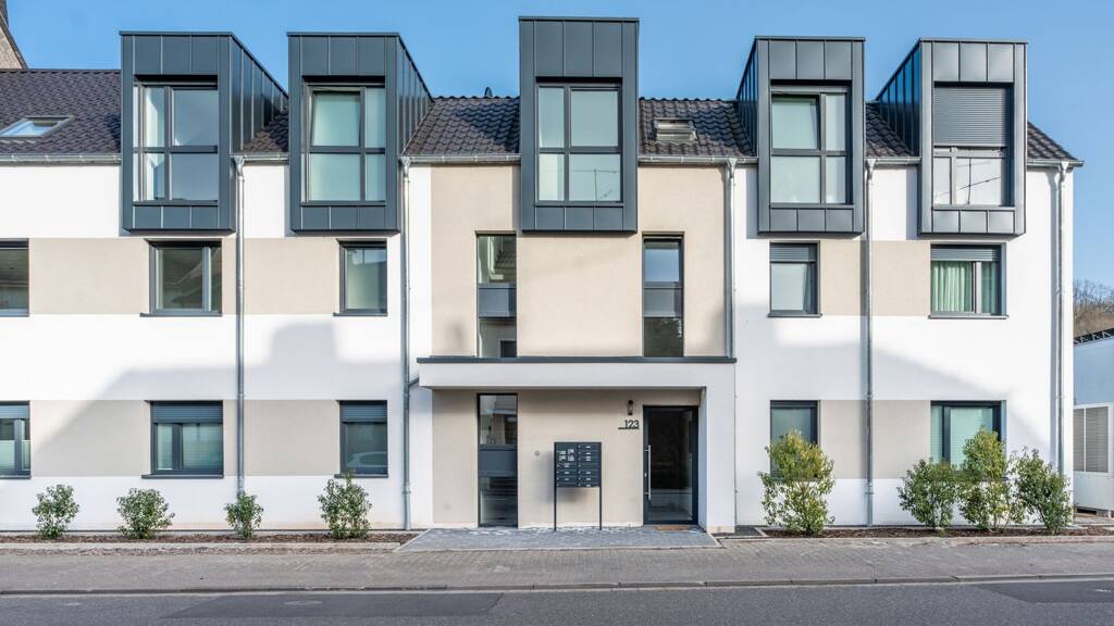 Im 1. Obergeschoss gelegen, bietet diese ca. 74 m² große Wohneinheit moderne Architektur dort, wo Saarbrücken zur Ruhe kommt. Das Gebäude, das zwischen 2022 und 2024 fertiggestellt wurde, besticht durch eine klare, zeitlose Formsprache und eine reduzierte Ästhetik, die auch in Jahrzehnten noch modern wirken wird.