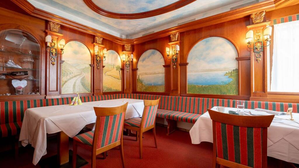 Gastronomie (Erdgeschoss): Im Erdgeschoss befindet sich ein etabliertes Restaurant (Pachtvertrag läuft aus, das Restaurant ist ab Juli 2025 neu zu verpachten) mit einer großzügigen, sonnigen Terrasse, die in den wärmeren Monaten zum verweilen einlädt. Der Gastronomiebereich ist brauereifrei und somit unabhängig - ein klarer Vorteil für Betreiber mit eigenen Konzepten. Die Räume sind funktional und gleichzeitig einladend gestaltet. Für Feierlichkeiten bis ca. 10 Personen bietet das "Stüble" als Nebenraum eine ideale Ergänzung. Eine voll ausgestattete Küche sowie sanitäre Anlagen sind selbstverständlich vorhanden.