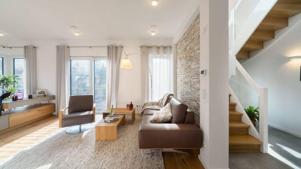 Dieses Haus überzeugt durch viel Platz und Raum. 230 m² stehen zur Verfügung und bieten dank großzügigem Grundriss und offener, heller Raumgestaltung jede Menge Entfaltungsmöglichkeiten. Die an das Erdgeschoss angrenzende Einliegerwohnung kann als Wohnraumerweiterung genutzt oder vermietet werden. Highlights im Obergeschoss: die firsthohe Galerie und die über 30 m² große Dachterrasse. Die markante Fassade, Übereckverglasungen, das abgesetzte Zwerchhaus und der große Dachüberstand sorgen bereits auf den ersten Blick für Wow-Effekte. Estenfeld - ein Haus, von dem man spricht.