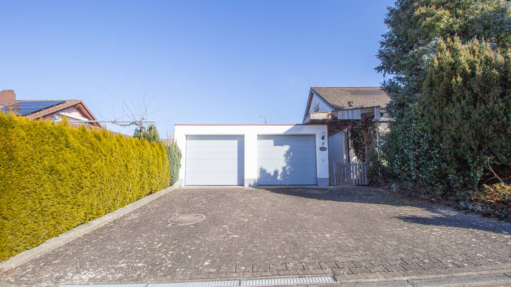 Doppelgarage: Zwei elektrische Garagentore sorgen für bequemen Zugang und schützen Ihre Fahrzeuge vor Witterungseinflüssen.