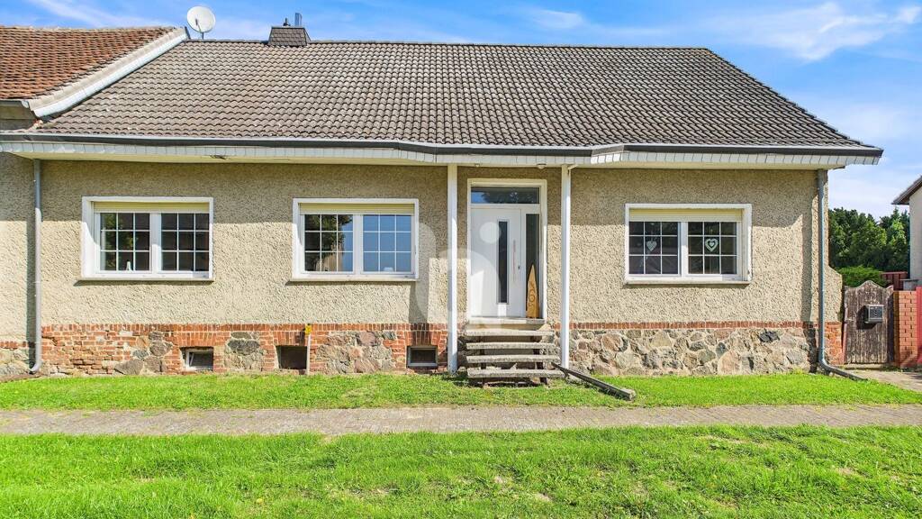 Dieses Einfamilienhaus in Kötzlin (bei Kyritz) verbindet auf rund 114 m² Wohnfläche klare Strukturen mit modernem Wohnkomfort - alles auf einer Ebene. Wohnzimmer mit Kamin, Küche mit Einbaugeräten, Schlafzimmer mit Ruhefaktor, dazu ein Bad und eine praktische Speisekammer. Das Grundstück? Mit 2.898 m² bietet es viel Platz fürs Hier und Jetzt - und für deine Pläne von morgen.