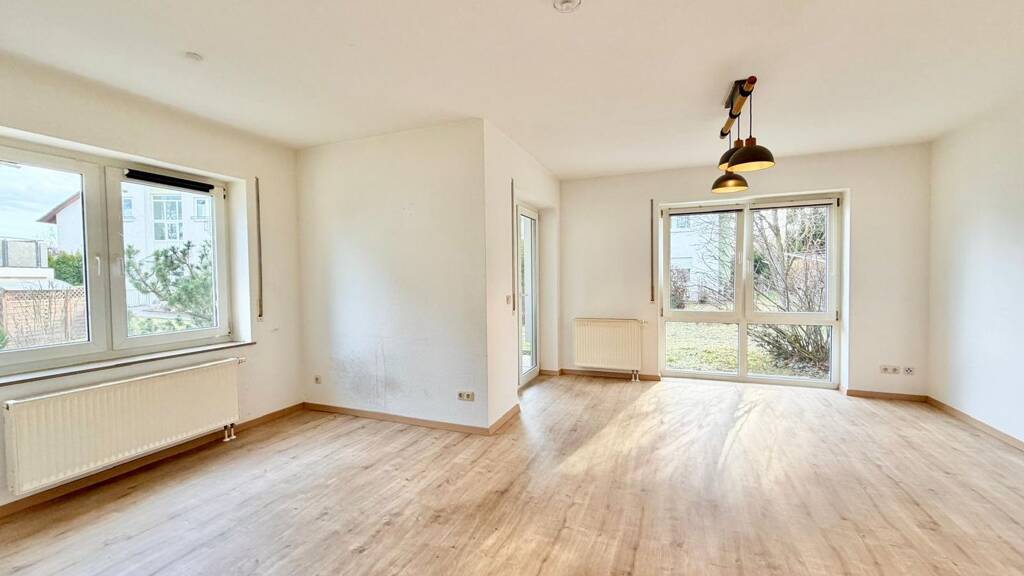 Die hier angebotene bezugsfreie 2-Zimmer Wohnung befindet sich im Erdgeschoss eines im Jahr 1997 errichteten Mehrfamilienhauses mit 5 Parteien. Die insgesamt ca. 67 m² Wohnfläche verteilen sich auf einen vorteilhaften Grundriss. Sie betreten die Wohnung über einen sehr großzügigen Flurbereich, welcher genügend Stellfläche für Garderoben und Schränke bietet. Über das lichtdurchflutete Wohn- und Esszimmer gelangt man auf die sonnige Süd-West-Terrasse. Der die Terrasse umrundende Garten darf als Sondernutzungsrecht exklusiv genutzt und gepflegt werden. Aktuell besteht aber keine Abgrenzung, sodass der Gartenanteil in die Gemeinschaftsfläche übergeht und somit auch von der Gartenpflege mit bewirtschaftet wird. Die neben dem Wohnbereich liegende Küche geht vom Flur ab. Das Tageslichtbad ist mit einer Dusche, einer Badewanne und dem Waschmaschinenstellplatz ausgestattet. Einen Rückzugsort bildet das gemütliche Schlafzimmer. Alle Fenster können mit vorhandenen Rollläden abgedunkelt werden. Im Dezember 2023 wurden u.a. folgende Renovierungsarbeiten durchgeführt: Erneuerung der Böden (hochwertiges Laminat in warmer Holzoptik) und Fußleisten, Austausch WC und Armaturen im Bad, Erneuerung Fliesen in der Dusche, malermäßige Instandsetzung. Weitere Abstellmöglichkeiten befinden sich im eigenen Kellerabteil. Abgerundet wird dieses Angebot durch einen Stellplatz in der Tiefgarage. Ein gemeinschaftlicher Trockenraum ist für alle Hausbewohner nutzbar. Fahrradabstellmöglichkeiten befinden sich in der Tiefgarage. Das monatliche Hausgeld beläuft sich auf 396 €. Davon sind 232 € auf die Mieter umlagefähig und 91 € fließen in die Instandhaltungsrücklage (IHR anteilig per 31.12.2024: 2.678 € (gesamt: 28.968 €)