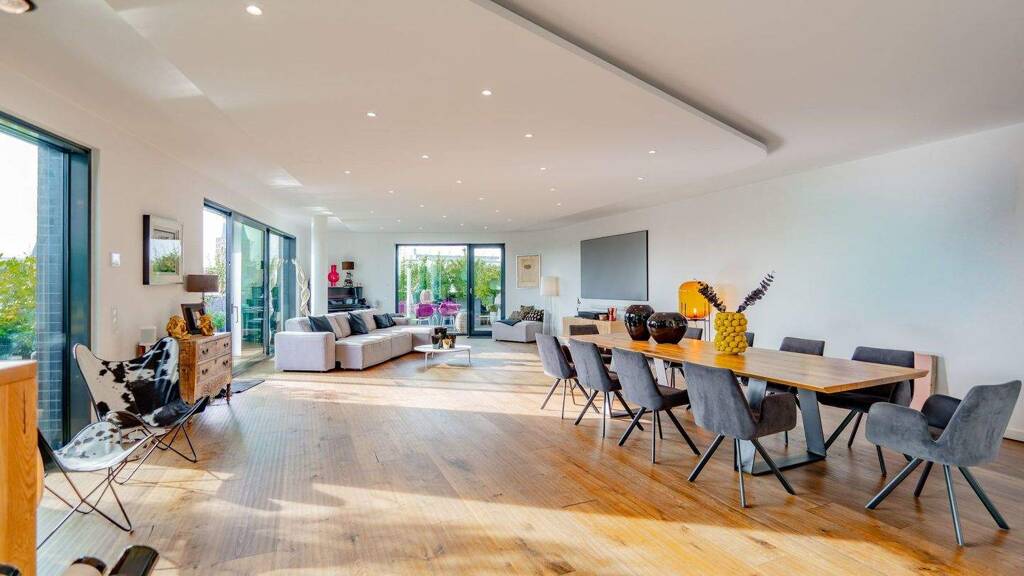 Herzlich willkommen in Ihrem neuen Zuhause über den Dächern von Kassel: Dieses außergewöhnliche Penthouse mit ca. 302 m² Wohnfläche in der Unterneustadt vereint zeitlose Eleganz, hochwertige Ausstattung und einen unvergleichlichen Ausblick auf das Urbane wie auch das Grüne der Stadt. Privatsphäre beim Zugang zu Ihrem luxuriösen Penthouse mit insgesamt 6 Zimmern ist durch den eigenen Aufzug gewährleistet, der Sie direkt in Ihr Loft führt. Diesen erreichen Sie von Ihren beiden Duplex-Stellplätzen in der Tiefgarage, die speziell für schwere Fahrzeuge konzipiert sind. Alternativ ist selbstverständlich ein Zugang über das Treppenhaus möglich. Der großzügige Wohn- und Essbereich beeindruckt mit durchgehendem Eichenfußboden, maßgefertigten Einbauschränken sowie einem modernen, indirekten LED-Lichtkonzept, das eine einladende Atmosphäre schafft. Bodentiefe Fenster mit 3-Fach Verglasung öffnen den Blick weit über Kassel hinaus und die durchgehende Deckenhöhe von drei Metern schafft ein angenehmes und offenes Raumgefühl. Der Master-Bedroom erfüllt höchste Ansprüche: Neben einer private Terrasse mit Whirlpool, erwarten Sie ein von zwei Seiten begehbarer Ankleidebereich sowie ein exklusiver Spa-Bereich. Hier finden Sie eine große Schwall-Dusche, eine Design-Badewanne, hochwertige Armaturen, Keramik und Naturstein. Eine Tageslicht-Sauna mit Blick in die Kasseler Aue machen dieses Penthouse zu einem echten Wohlfühlrefugium. Mit zwei begrünten Sonnenterrassen von insgesamt ca. 84 m² genießen Sie den Luxus weitläufiger Außenbereiche - ausgestattet mit Somfy-Markisen. Die offene Küche bietet kompromisslose Qualität: Hochwertige Schreinerarbeiten mit nahtlos integrierten, modernen Miele-Einbaugeräten und eine klare Designsprache vereinen Funktionalität mit Ästhetik. Sämtliche Räume sind selbstverständlich klimatisiert. Ein separater Kellerraum rundet das Raumangebot ab. Pläne für eine Teilung liegen ebenfalls vor, sprechen Sie uns gerne darauf an. Dieses Penthouse ist nicht einfach nur eine Wohnung - es ist ein Statement für anspruchsvolles, urbanes Wohnen in einer der gefragtesten Lagen Kassels. Fazit: Exklusivität, durchdachte Architektur und Wellness-Komfort auf höchstem Niveau machen dieses "Fuldaloft" einzigartig. Vereinbaren Sie gerne einen Besichtigungstermin und lassen Sie sich von der besonderen Atmosphäre persönlich begeistern - Wir freuen uns auf Sie!
