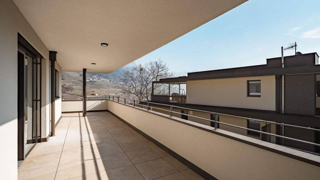 Die neue Wohnanlage ist leicht oberhalb vom Dorfkern und befindet sich in erstklassiger und ruhiger Lage und ist zudem ideal gelegen in der Nähe der Stadt Meran, welche in wenigen Autominuten, erreichbar ist. Partschins ist nur 8 km von Meran entfernt und hat ca. 3887 Einwohner. In der Nähe des modernen Wohnhauses befinden sich Einkaufsmöglichkeiten, Restaurants und Bars. Nur wenige Schritte entfernt ist man von der schönen Natur, wo sich verschiedene Wanderwege befinden.