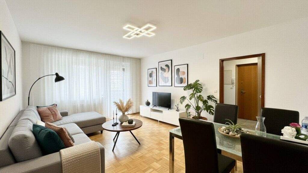Die Wohnung verfügt über ein Schlafzimmer, ein Badezimmer, ein separates WC sowie ein flexibel nutzbares Kinder- bzw. Arbeitszimmer. Eine moderne Einbauküche, hochwertige Böden, Klimaanlage, Fernwärme und ein Personenaufzug sorgen für guten Wohnkomfort.