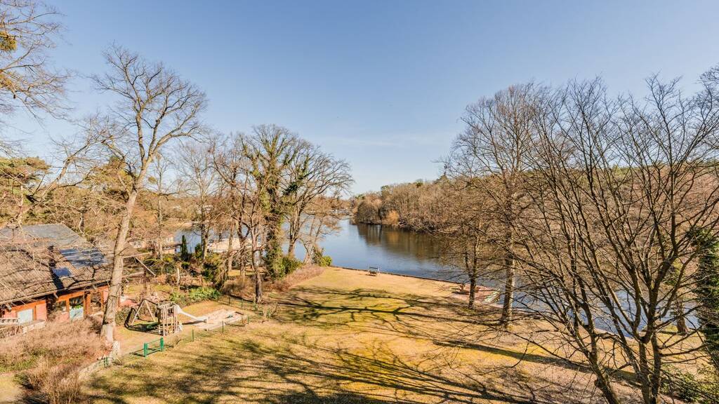 Das unbestrittene Highlight der Wohnung ist die außergewöhnlich große, überdachte Terrasse. Sie erweitert den Wohnraum auf elegante Weise nach außen und bietet einen eindrucksvollen Panoramablick auf den Kleinen Wannsee und den Pohlesee. Hier entsteht ein Rückzugsort, der zu jeder Tageszeit begeistert - ob beim Frühstück mit Blick auf das Wasser, beim entspannten Lesen am Nachmittag oder bei stimmungsvollen Abenden in einzigartiger Kulisse. Die überdachte Ausführung macht die Terrasse zu einem ganzjährig nutzbaren Lieblingsplatz und unterstreicht den besonderen Charakter dieser Wohnung.