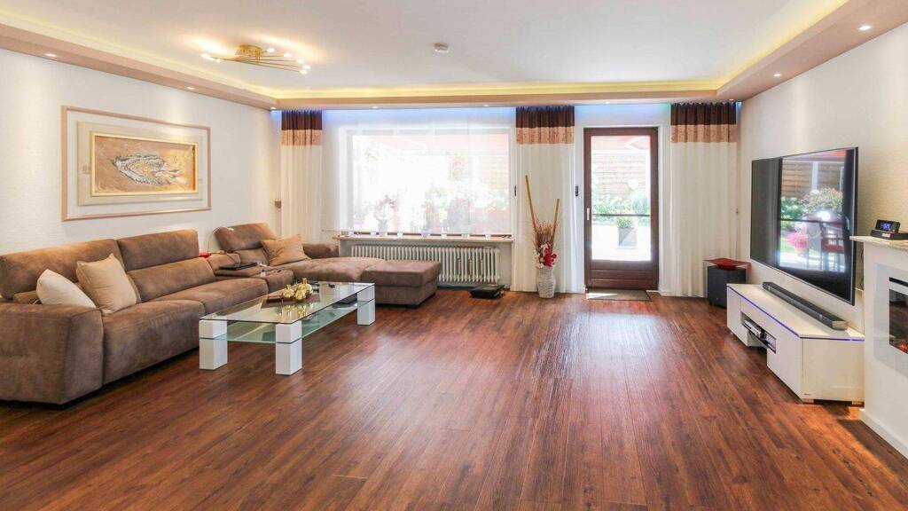 Die vielseitige Ausstattung umfasst eine hochwertige Einbauküche und praktische Jalousien, während der Keller zusätzliche Staufläche bietet. Für Fahrzeuge stehen eine Doppelgarage sowie 2 weitere Freistellplätze zur Verfügung, was zusätzlichen Komfort garantiert.