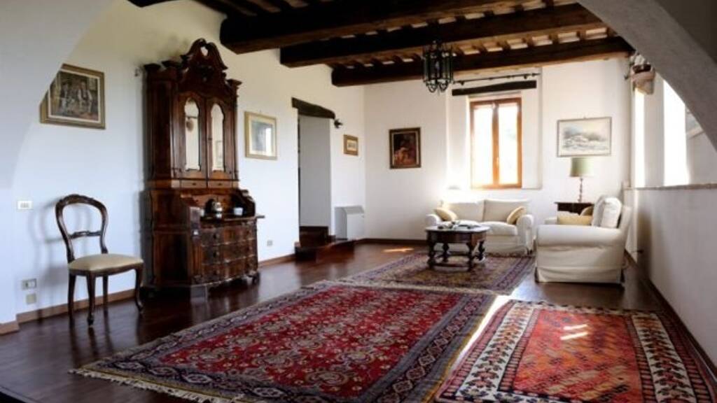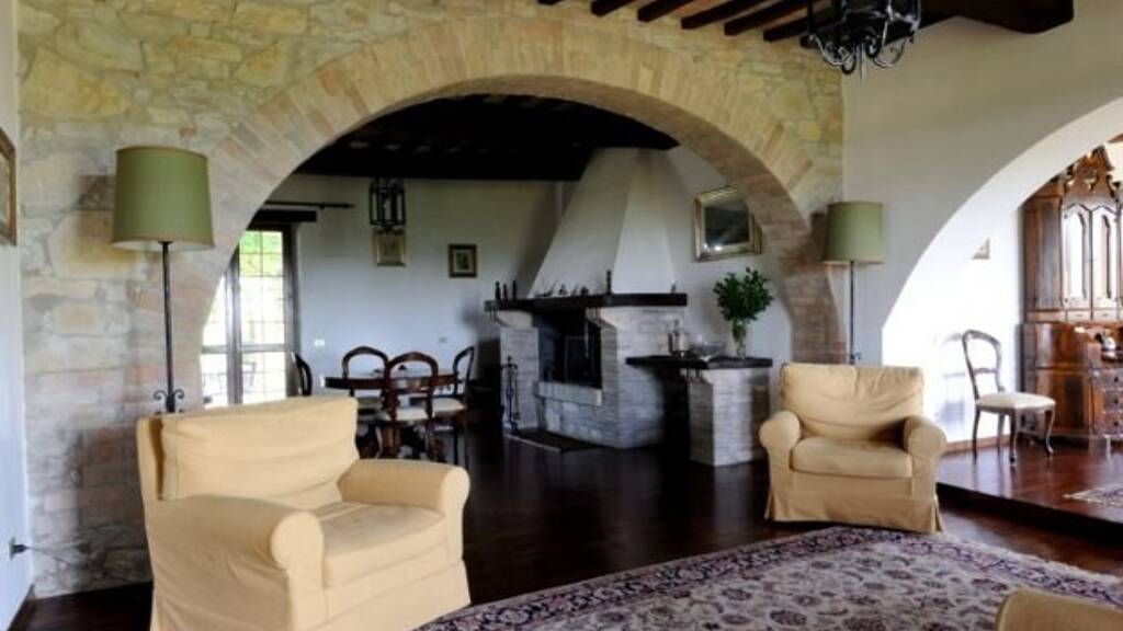 Energieausweis: ZU DIESER IMMOBILIE LIEGT DERZEIT NOCH KEIN ENERGIEAUSWEIS VOR. IN VORBEREITUNG. Das zweistöckige Haus von ca. 540 qm ist durch eine Veranda mit Backsteinbögen zu einem Anbau von 145 m2 verbunden, der einst als Stall und Scheune diente. Das Hauptmerkmal des Hauses sind die geräumigen Räume, vor allem der Wohnbereich des Erdgeschosses mit seinen 4 prächtigen Räumen mit Sitzecken und Esszimmer, die durch Bögen verbunden sind. Im Erdgeschoss befinden sich die Eingangshalle, 4 Zimmer (Wohnzimmer mit Kamin, weitere Wohnzimmer, Esszimmer mit Parkettböden und Holzdecken), ein weiteres Zimmer mit Holzbalken , ein Arbeitszimmer und eine große Küche. Der erste Stock besteht aus: 1 großen Bibliothek, Diele, 3 Schlafzimmern, 1 Badezimmer mit Jacuzzi, 1 Bad mit Dusche, 1 kleinem Hauswirtschaftsraum, 1 Hauswirtschaftsraum, der eine Küche werden kann, 1 Bad mit Dusche, 1 Einbauküche. Der Anbau besteht aus: Vorraum, großem Wohnzimmer/Küche, 2 Zimmer, 1 Bad mit Dusche. Das eingezäunte Land von 33 Hektar hat Olivenhainen, die etwa 55 kg Öl produzieren, und andere Pflanzen. Es gibt keine Häuser in der Nähe und das Bauernhaus kann über eine private Straße 800 m lang erreicht werden. Die Terrasse, wo man die kühle Brise des Hügels genießen kann, bietet einen einzigartigen Blick auf acht umbrische Dörfer und auf die wunderschönen umliegenden grünen Hügel. Das Haus verfügt über einen mit der Polizei von Todi verbundenen drahtlosen Alarm, einen artesischen gut funktionierenden Brunnen und einen anderen, der derzeit nicht gebraucht wird, und 2 Kessel (im Erdgeschoss und im ersten S Interesse? Bitte senden Sie uns ein VOLLSTÄNDIG augefülltes Kontaktformular zu, Sie erhalten dann umgehend ein ausführliches Exposé. ACHTUNG MAKLER: Wir freuen uns auf eine Zusammenarbeit. Alle Angaben stammen vom Verkäufer der Immobilie. Ohne Gewähr! blueHOMES AG ...die schönsten Häuser Europas...