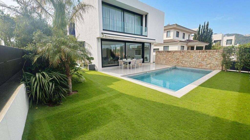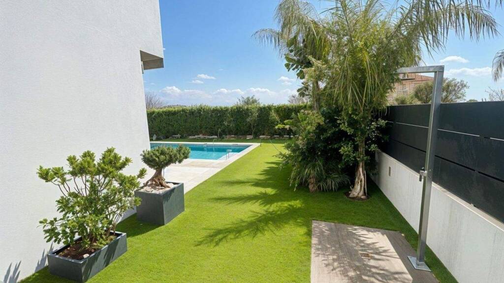 DESCRIPCIÓN: Presentamos esta espectacular villa de 480 m² construidos distribuidos en tres plantas sobre una parcela de 486 m² en la exclusiva zona residencial de Son Puig, Palma. Esta moderna propiedad ofrece cinco espacios habitables (cuatro dormitorios más un despacho convertible en quinto dormitorio) y cuatro baños completos, con una arquitectura contemporánea que maximiza la luz natural y las vistas panorámicas. La planta principal alberga el área de día con un gran espacio diáfano que integra salón, comedor y cocina abierta equipada, todo conectado visualmente con el espectacular jardín y piscina a través de amplios cerramientos acristalados. Un dormitorio y un baño completan esta planta. La planta superior acoge tres dormitorios luminosos con vistas panorámicas a la Sierra de Tramuntana y la bahía de Palma, creando ambientes relajados perfectos para el descanso. La planta baja, con acceso independiente, dispone del despacho o quinta habitación doble, un baño, una gran sala multifuncional con preinstalación para bar (ideal para discoteca, gimnasio o sala de TV), trastero y lavandería, todo a nivel del garaje con capacidad para varios vehículos...UBICACIÓN: Situada en Son Puig, una de las zonas residenciales más deseadas y exclusivas de Palma de Mallorca, esta villa goza de una posición privilegiada rodeada de extensas áreas verdes de montaña y los prestigiosos campos de golf de Son Vida. La ubicación estratégica permite estar a solo 7 minutos del centro de Palma, combinando la tranquilidad de un entorno natural con la proximidad a todos los servicios urbanos. La zona cuenta con colegios de prestigio, centros comerciales, campos de golf y fácil acceso a las principales vías de comunicación de la isla. Las vistas panorámicas abarcan toda la ciudad de Palma hasta el mar Mediterráneo, con la majestuosa Sierra de Tramuntana como telón de fondo, creando un marco incomparable para disfrutar del auténtico estilo de vida mallorquín...EQUIPAMIENTO: La propiedad destaca por sus excepcionales espacios exteriores que hacen realidad el sueño de vivir en la ciudad conectado con la naturaleza. El jardín mediterráneo rodea una piscina de agua salada con zona de solárium equipada con ducha exterior de agua fría y caliente. La zona de barbacoa con horno de pizza, accesible directamente desde la cocina, invita a disfrutar de comidas y cenas al aire libre durante todo el año. La villa cuenta con alta eficiencia energética (certificación energética con consumo 121 kWh/m² año y emisiones 35 kg CO2/m² año) gracias a placas solares de 10.000 kw que reducen considerablemente el consumo energético. El equipamiento incluye aire acondicionado frío/calor en todas las estancias, calefacción por suelo radiante, doble acristalamiento, armarios empotrados, sistema de audio integrado tanto interno como externo, persianas y toldos eléctricos. La cocina equipada abierta se integra perfectamente en el espacio de día. Orientación sur-este que garantiza luz natural durante todo el día. Garaje con capacidad para varios vehículos, trastero y lavandería completan las prestaciones de esta excepcional propiedad.