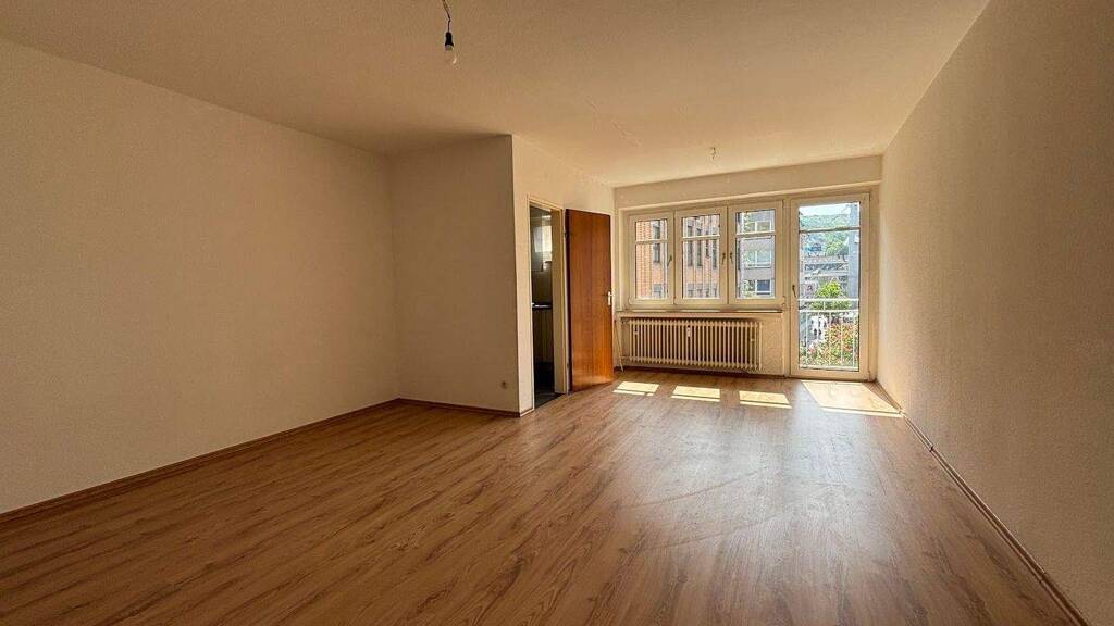 Der Wohnund Essraum, das Schlafzimmer sowie der Flur sind mit einem eleganten Laminatboden ausgestattet, die Wände der Wohnung sind in einem frischen Weiß gestrichen. Die separate Küche ist mit einem modernen Fliesenboden versehen und bietet ausreichend Platz für eine moderne Einbauküche. Das Badezimmer ist mit hellen Fliesen ausgestattet und verfügt über eine komfortable Badewanne. Eine praktische Abstellkammer bieten zusätzlichen Komfort und Stauraum.