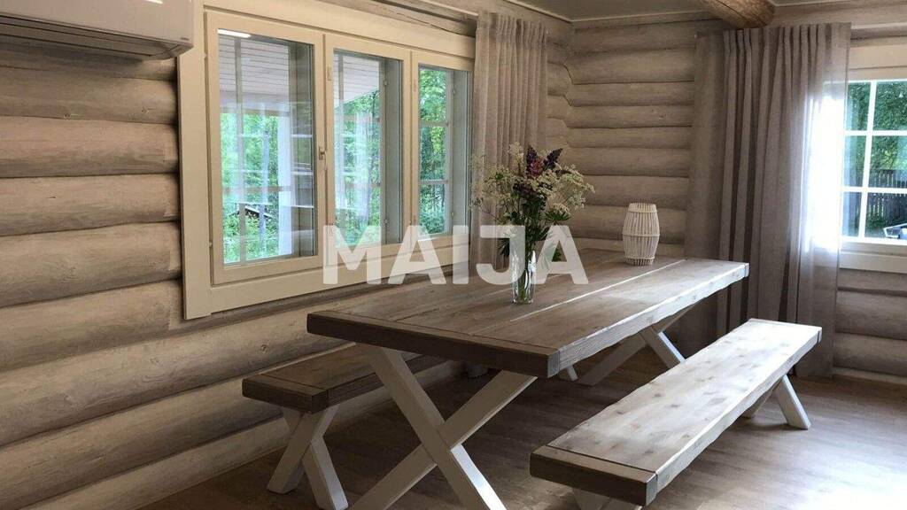 Zum Kochen finden Sie eine voll ausgestattete Küche, eine große überdachte Terrasse und ein Barbecue-Baldachin am Strand. Für Dampfmomente gibt es sowohl eine Innen- als auch eine Strandsauna. Die Wärme in der Villa wird durch eine Fußbodenheizung, einen Kamin und eine Luftwärmepumpe erzeugt. An heißen Tagen sorgen mechanische Belüftung und Luftwärmepumpe auch für die dringend benötigte Kühlung.