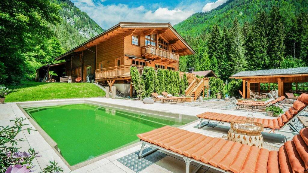 In sonniger Ruhelage am Fuße der Steinplatte und am Ende einer kaum befahrenen Straße, liegt dieses exklusive Wellness-Chalet auf einem 1.432 m² großen Grundstück. Das Haus, 1995 erbaut und später vollständig hochwertig renoviert, präsentiert sich in eleganter Holzbauweise mit einer Wohnfläche von 308 m² sowie 76 m² Nutzfläche und verfügt über eine Hauptwohnsitzwidmung.