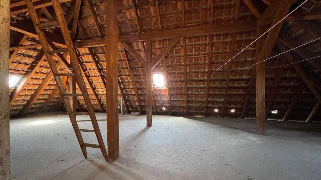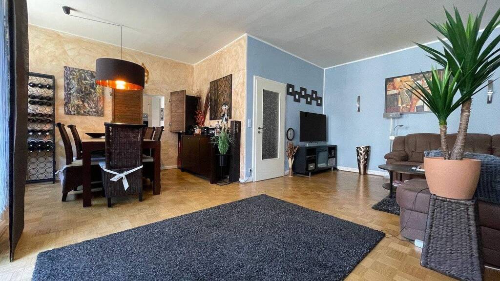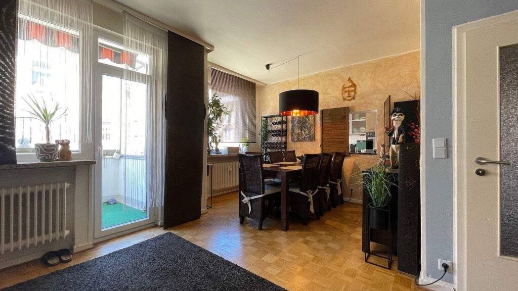 - Balkon mit manueller Markise - innenliegendes Bad mit Badewanne und Waschmaschinenplatz - Küche mit Durchreiche - Kellerraum - Abstellfläche im Dachgeschoss - Die Wohnungseingangstüren wurden 2024 im ganzen Haus erneuert - Einbauküche (Geschirrspüler defekt) - Trockenboden im Dachgeschoss
