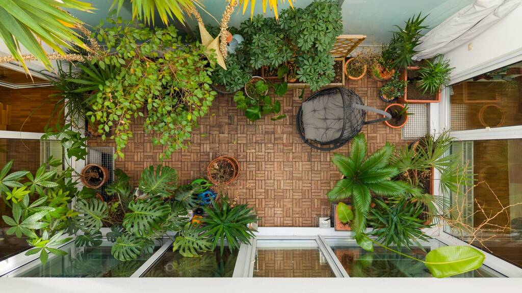 Das absolute Highlight dieser Immobilie ist das verglaste Atrium im Zentrum des Hauses. Es sorgt für eine beeindruckende Lichtstimmung und eröffnet vielfältige Nutzungsmöglichkeiten - ob als grüner Garten, stilvolle Terrasse oder private Ruheoase. Das Atrium ist überdacht, teilweise zu öffnen und zusätzlich mit einer Markise für den Sommer ausgestattet.