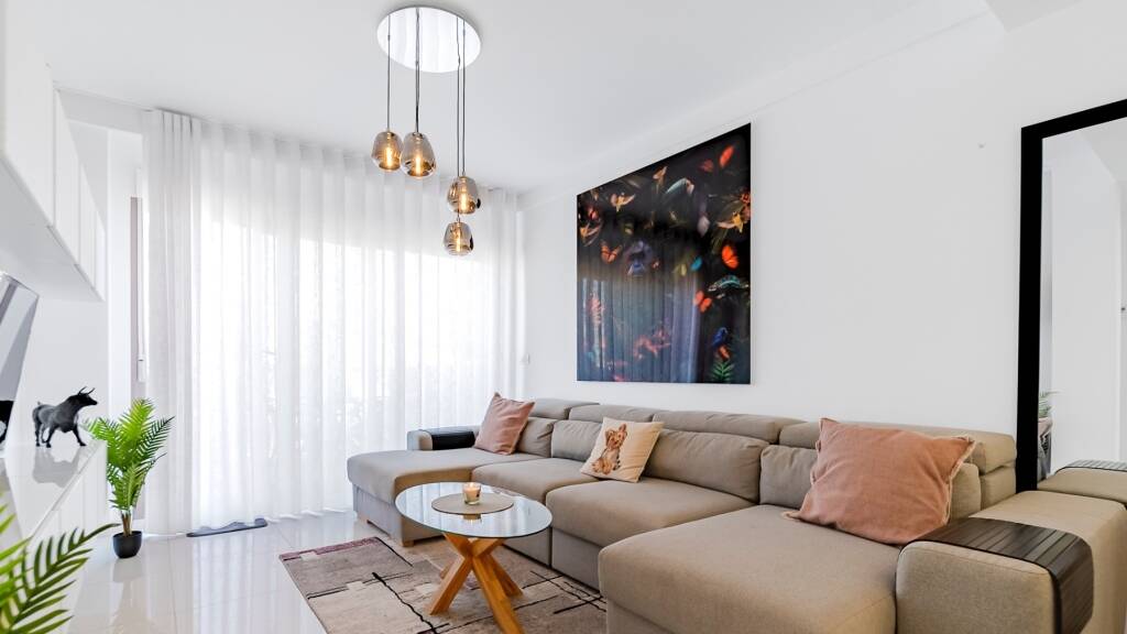 Diese Wohnung befindet sich im Wohnkomplex Bianca Beach in der Gemeinde Pilar de la Horadada, nur 200?Meter vom Strand Mil Palmeras entfernt. Sie wurde im Jahr 2020 erbaut und bietet eine praktische Raumaufteilung sowie eine günstige Lage in der Nähe von Supermärkten, Restaurants und Sportanlagen - ideal für dauerhaftes Wohnen oder den Urlaub. Die Wohnfläche beträgt ca. 59,76?m² und umfasst ein Wohnzimmer mit offener, modern ausgestatteter Küche, zwei Schlafzimmer mit Einbauschränken sowie zwei Bäder mit hochwertigen Ausstattungen. Vom Wohnbereich gelangt man auf einen Balkon von etwa 7,37?m² mit Blick auf den Gemeinschaftspool - ein angenehmer Ort zum Verweilen im Freien. Ein Highlight ist das private Dachsolarium mit rund 56,22?m², das über eine Innentreppe erreichbar ist und mit einem Whirlpool sowie freiem Ausblick ausgestattet ist - perfekt zum Entspannen. Zur Wohnanlage gehören ein Gemeinschaftspool und Gartenbereiche. Ein Tiefgaragenstellplatz ist im Preis inbegriffen. Eine funktionale Wohnung mit attraktiven Außenflächen in Strandnähe - perfekt für das Leben an der Costa Blanca.