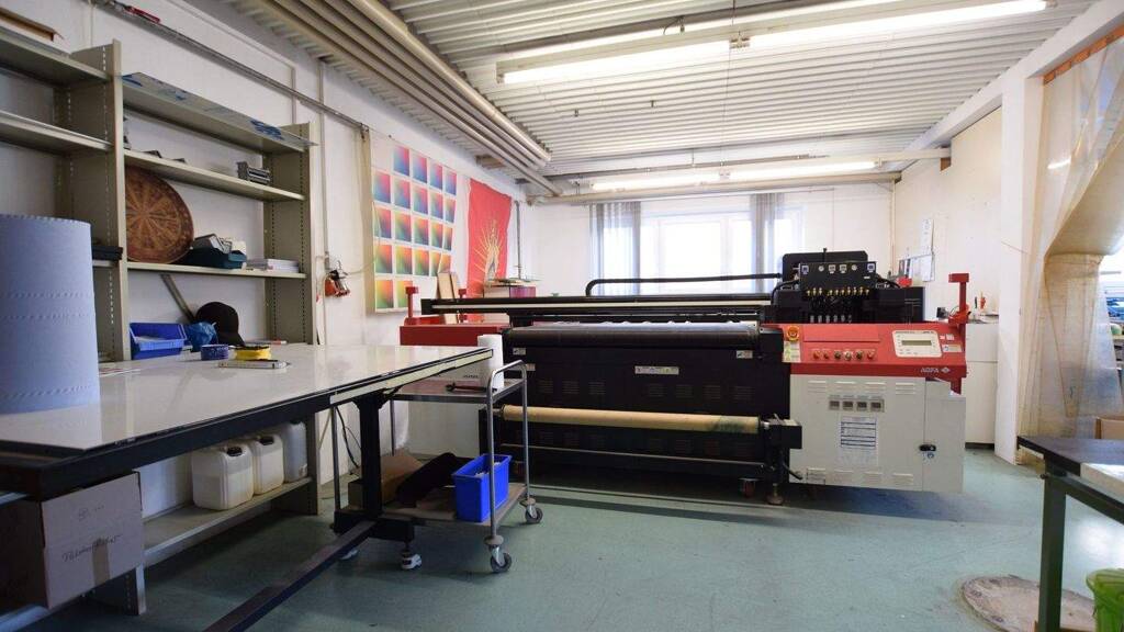 Gebäude 1 gliedert sich in ein Erd- und ein Obergeschoss. Im Erdgeschoss befindet sich ein Eingangsbereich sowie eine Toilette. Angrenzend liegt ein großer Arbeitsraum mit einem Rolltor in den Aussenbereich und Betonboden im vorderen Bereich. Der hintere Bereich ist als Produktionsfläche ausgeführt und verfügt über einen direkten Zugang zur Halle. Die Halle selbst ist als Hochregallager konzipiert und mit einem großen Rolltor ausgestattet. Ein zweiter Zugang führt ebenfalls in den hinteren Produktionsbereich. Zusätzlich steht ein separater Lagerraum mit Rolltor zur Verfügung.