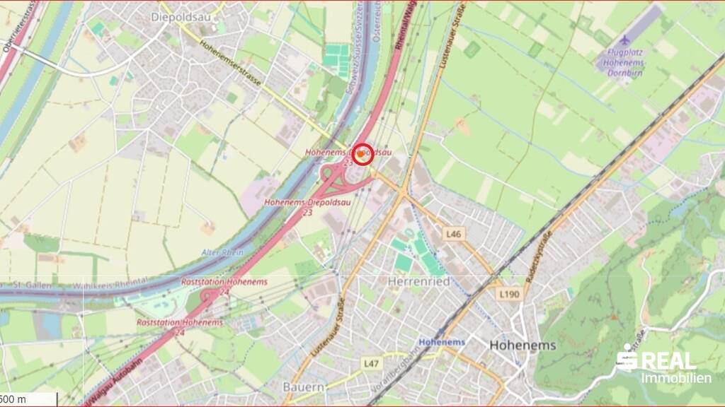 Die Liegenschaft, welche sich in der Diepoldsauerstraße 130 in Hohenems befindet, überzeugt mit einer super Lage. Von hier aus erreichen Sie in nur wenigen Minuten eine Vielzahl von Geschäften, die Schweizer Grenze sowie die Autobahnanbindung.